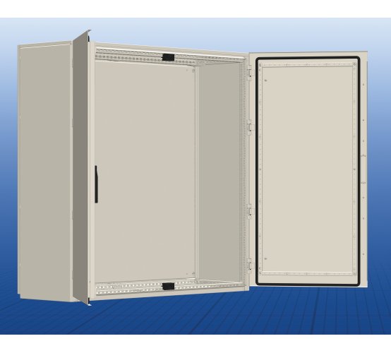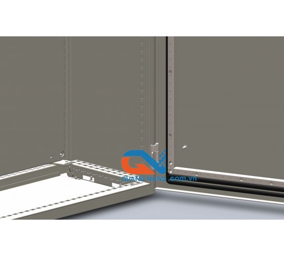 Vỏ tủ: chấn cạnh 4 lần và hàn liền mối với khung tủ, tạo thành khung vững chắc. Khung gắn có lỗ đột để có thể điều chỉnh tấm gắn thiết bị theo chiều sâu, mỗi bước 25mm